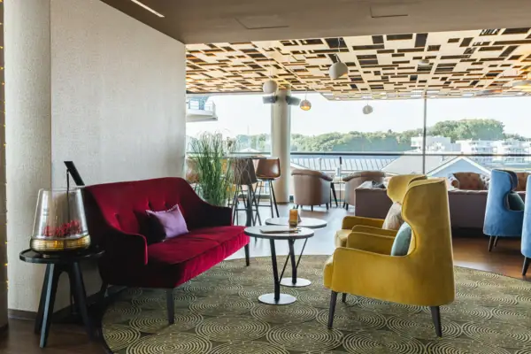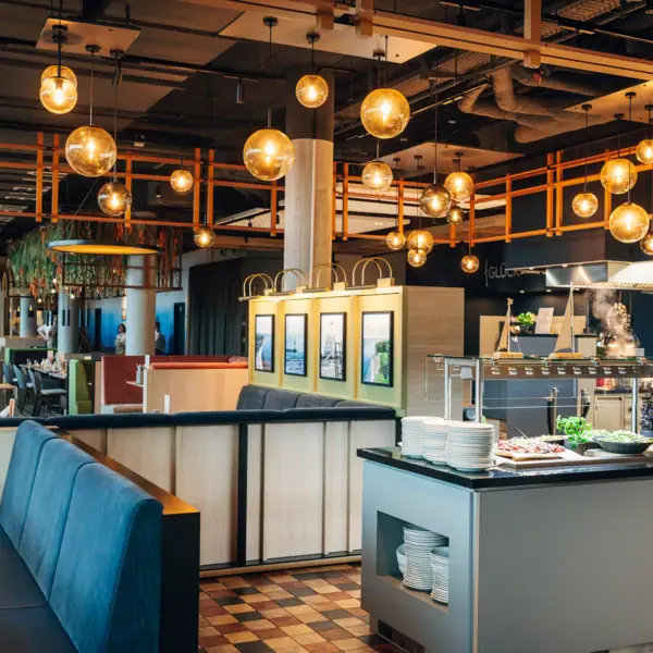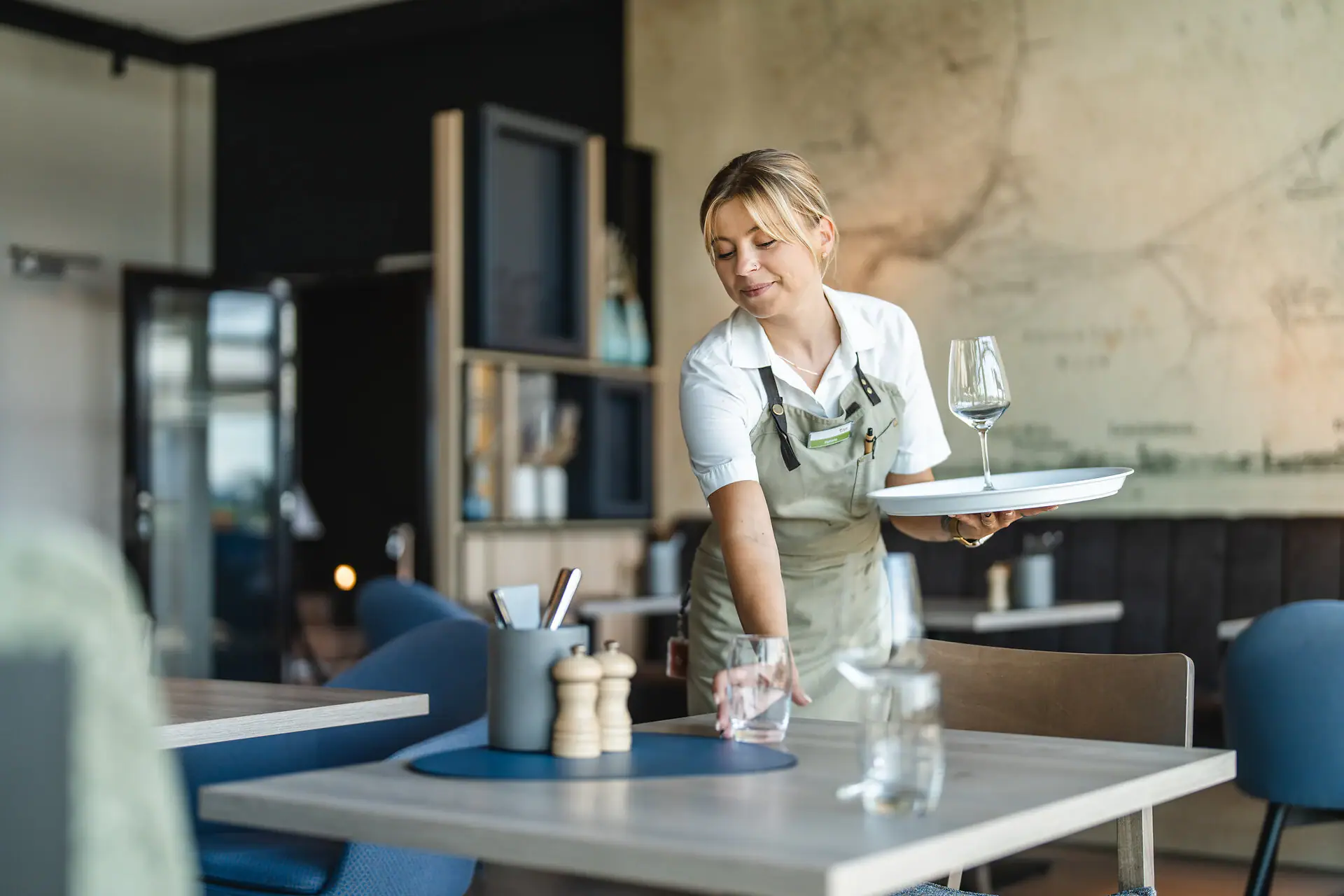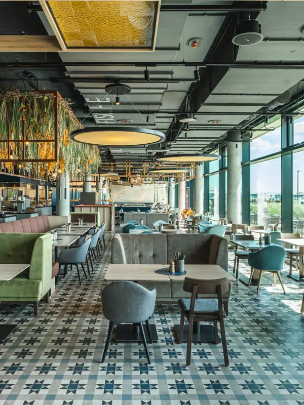 Im Restaurant des aja Travemünde genießt du die Vielfalt am Buffet und gleichzeitig den Blick auf die Schiffe auf der Trave und die Promenade. Du hast die Wahl zwischen verschiedenen Sitzbereichen – mal ganz nah am Wasser, mal etwas ruhiger. Familien fühlen sich hier besonders wohl, denn es gibt einen eigenen Bereich mit angrenzendem Spielzimmer für die Kleinsten. So wird Essen für alle entspannt.