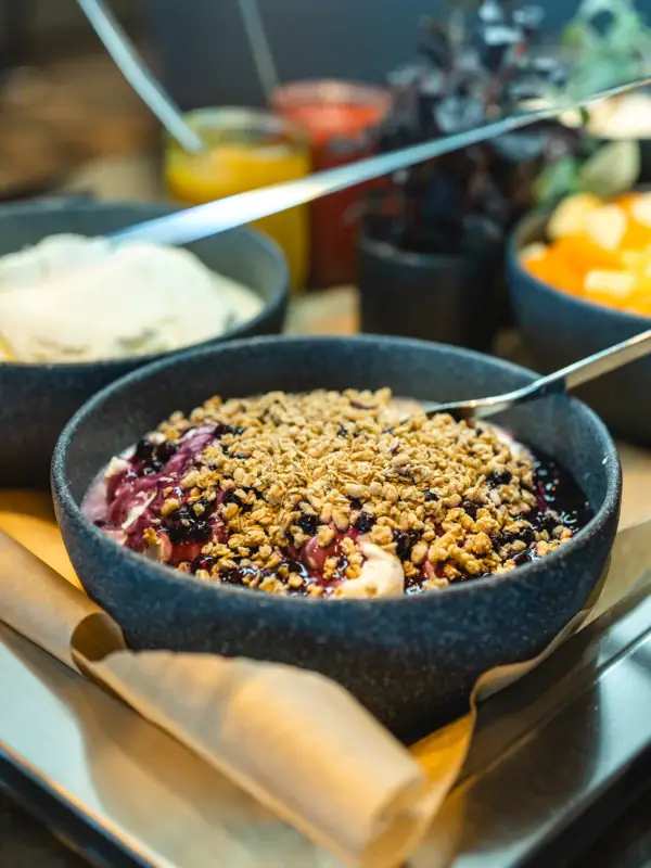 Frühstück und Urlaub gehören einfach zusammen. Im aja Travemünde startest du mit genau dem, worauf du Lust hast: knusprige Brötchen und Brot vom lokalen Bäcker, Müsli, Obstsalat oder Quark für den leichten Start und frisch zubereitete Eierspeisen von der Live-Cooking-Station. Dazu Kaffee- und Teespezialitäten, Wasser, Säfte oder heißer Kakao. Mit Blick aufs Wasser schmeckt der Morgen nochmal ein bisschen mehr nach Urlaub.