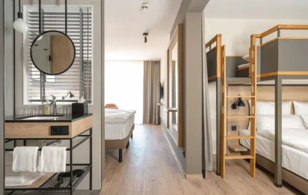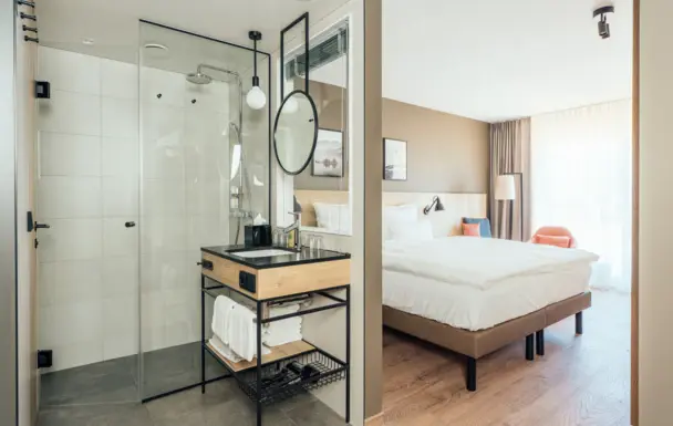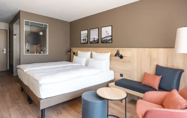 Moderne Einrichtung und innovative Lösungen: Unsere aja Zimmer bieten Ihnen alles, was Sie für Ihren Urlaub benötigen. Und auch für alle, die auf Extras wie Minibar oder Safe nicht verzichten wollen, haben wir eine Lösung parat.