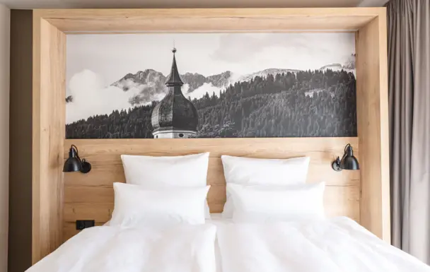 Einfach in die Berge blicken und ganz entspannt einschlafen: Weil gut schlafen zum Urlaub einfach dazugehört, wartet im aja Garmisch-Partenkirchen Ihr Wohlfühlort zum Träumen auf Sie.