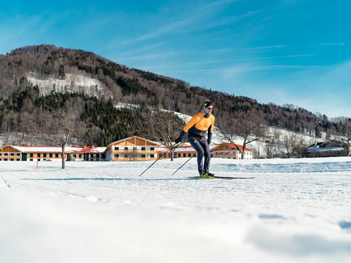 Ruhpolding und der Chiemgau bieten dir perfekte Bedingungen für dein Skilanglauf-Abenteuer. Ein kostenfreies Loipennetz über 130 Kilometer beginnt direkt vor dem aja Ruhpolding. Vorbei an unserem Drei-Seen-Gebiet führen die Loipen auch nach Inzell und Reit im Winkl.
